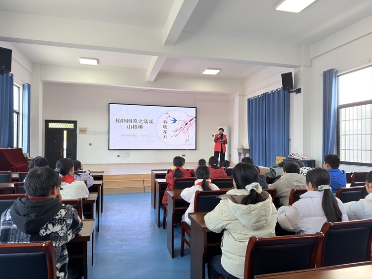 “3.12植树节”当天,绩溪县图书馆走进临溪镇中心小学,开展“植物图鉴:寻踪绩溪山珍——探寻核桃密码”主题阅读活动,通过图文讲解与互动交流相结合的方式,带领学生认识家乡特色植物——绩溪山核桃,在阅读与探索中感受自然之美。