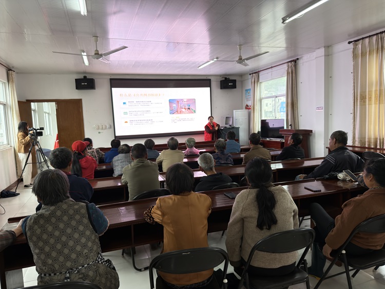 4月22日上午,绩溪县图书馆走进伏岭村村委会,开展“书香润夕阳 法护阅读权”普法宣传活动,面向村内老年群体普及公共文化服务相关法律知识。