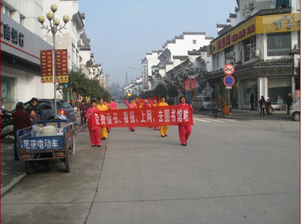 12月17日,县图书馆在馆领导的带领下,组织开展了“免费看书,上街宣传活动”组织腰鼓队打着“免费看书,上网阅读,请到图书馆来”的横幅,走上街头,向广大市民开展宣传,扩大了图书馆在社会上的影响,营造了良好的宣传氛围。 |