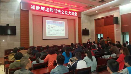 4月23日晚,绩溪县文联和县图书馆在行政办公中心负一楼会议室举办崔胜辉老师书法公益讲座(崔胜辉老师系中国书法家协会培训中心教授)。崔教授来绩溪给书友们带来了一堂别开生面的书法讲座,他从写字与书法、书法的法度、优秀书法作品的标准、学习书法的路径、创作与临摹、学习书法的步骤等五个方面对书法知识进行了全面深刻的诠释,令人耳目一新,获益匪浅。全县70多名书法爱好者及各中小学书法老师聆听了讲座。此次活动得到万家利批发公司刘益民先生的大力支持。县文联主席许嫒表示,崔教授开启了绩溪书法公益讲座的新篇章,今后将继续开展一系列公益讲座。 |