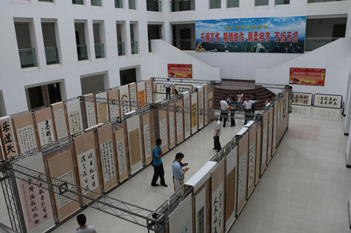 值中国共产党建党93周年,为展示我县书法艺术水平,营造良好的企业文化氛围,6月30日,由安徽“合一电气”科技有限公司、县图书馆、县书法家协会联合举办的安徽“合一电气”——绩溪书法作品联谊展在县行政办公大楼二楼大厅开展。县领导张平、许庭波、张正根、郑华等观看了展出作品。此次联展共展出书法作品88幅,参展作品上有九旬耄耋老书法艺术家,下有十几岁的书法爱好新秀。联展作品内容健康向上、充满激情、含义深刻、形式多样、数量空前。